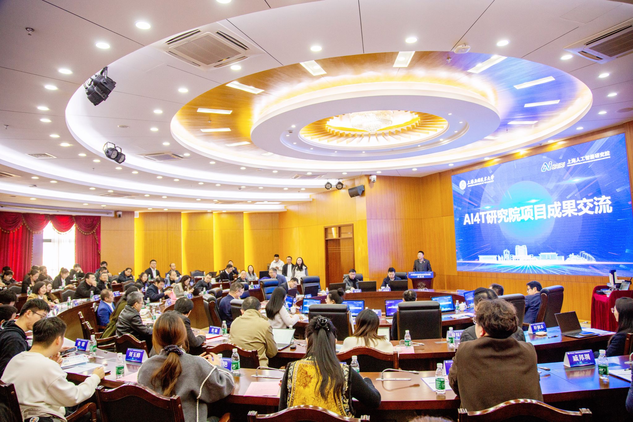 1月16日,上海应用技术大学“AI 赋能科研范式改革成果交流会”在奉贤校区举行。来自政府、高校、科研院所、知名企业及投资机构的嘉宾齐聚一堂,共同见证AI4T协同创新研究院的丰硕成果,共话AI赋能下的科研新范式、育人新形态与产业新动能。上海应用技术大学校长汪小帆,原校长、香料香精化妆品省部共建协同创新中心主任柯勤飞,校党委副书记、副校长王瑛,奉贤区科委党组副书记、副主任费嘉,上海人工智能研究院院长、AI4T协同创新研究院院长宋海涛等出席会议。副校长吴志军主持会议。